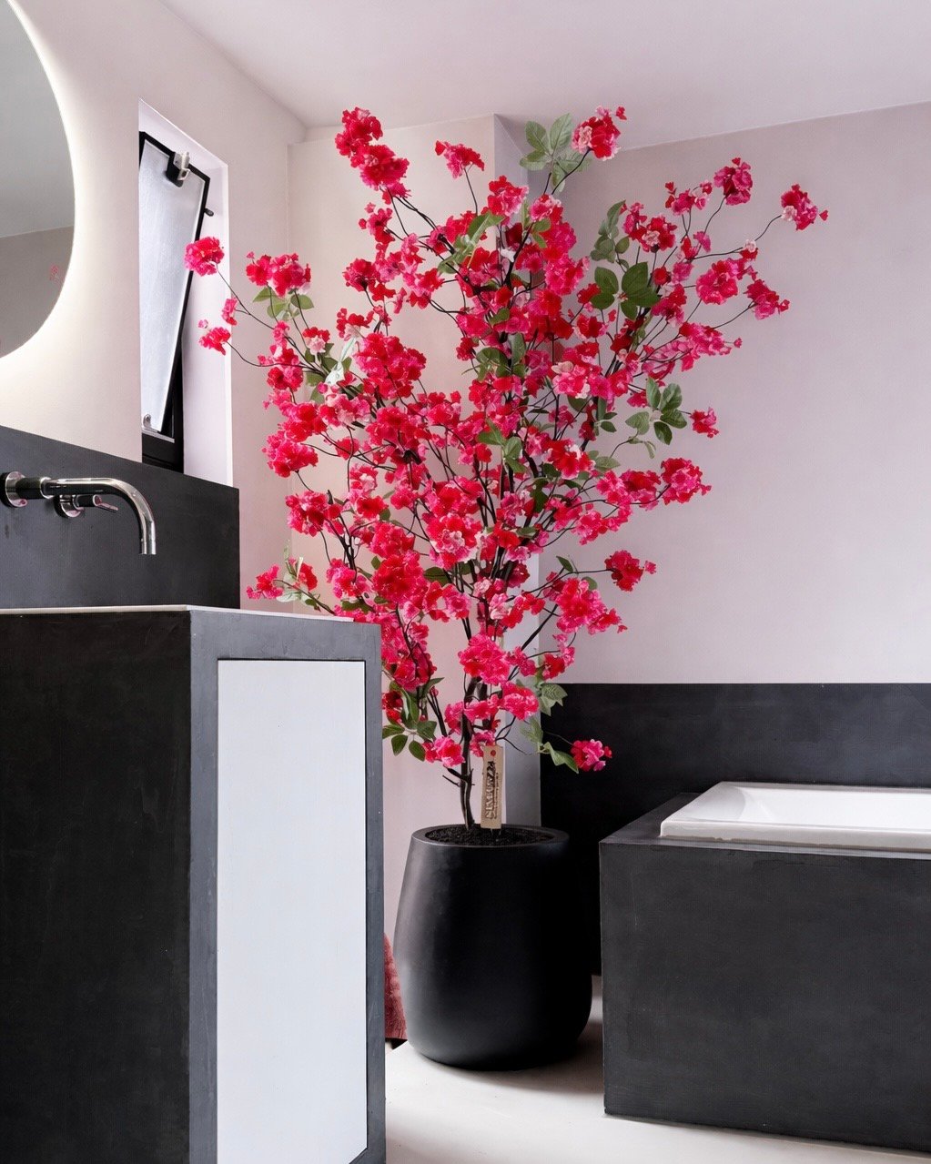 De kunstbloesemboom Beauty is een elegante roze blikvanger met een krachtige, verfijnde uitstraling. De volle zijden bloesems in de kleur Beauty bestaan uit verschillende rood- en rozetinten, wat zorgt voor diepte en een natuurlijke kleurnuance. Dankzij de echte houten stam krijgt deze kunstbloesemboom een luxe uitstraling die nauwelijks van echt te onderscheiden is.