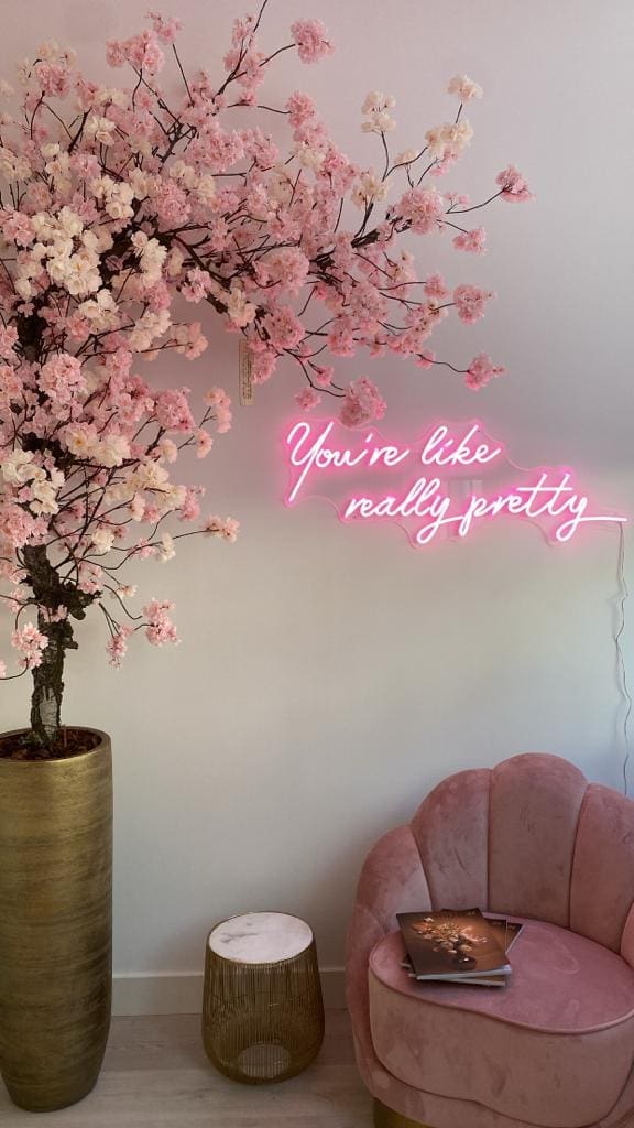 Geef jouw ruimte een unieke, fotogenieke uitstraling met een op maat gemaakte instawall. Voor deze beautysalon creëerden wij een indrukwekkende kunstbloesemboom met verlenging, perfect afgestemd op de wens om een uitnodigende fotospot te maken. De toevoeging van stijlvolle neonverlichting door de klant maakt het geheel tot een absolute eyecatcher.